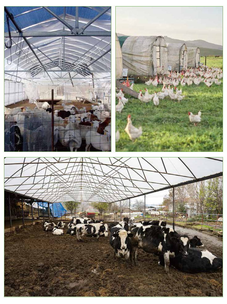 A greenhouse is designed as an area suitable for poultry growth. the ventilation system of the greenhouse helps maintain good air quality for birds and plants. poultry greenhouses protect animals from adverse weather conditions such as extreme heat, cold or excessive rainfall. exposure to predators and parasites is reduced compared to free-range chickens. egg production may be higher because the environment is more controlled and free from stress.